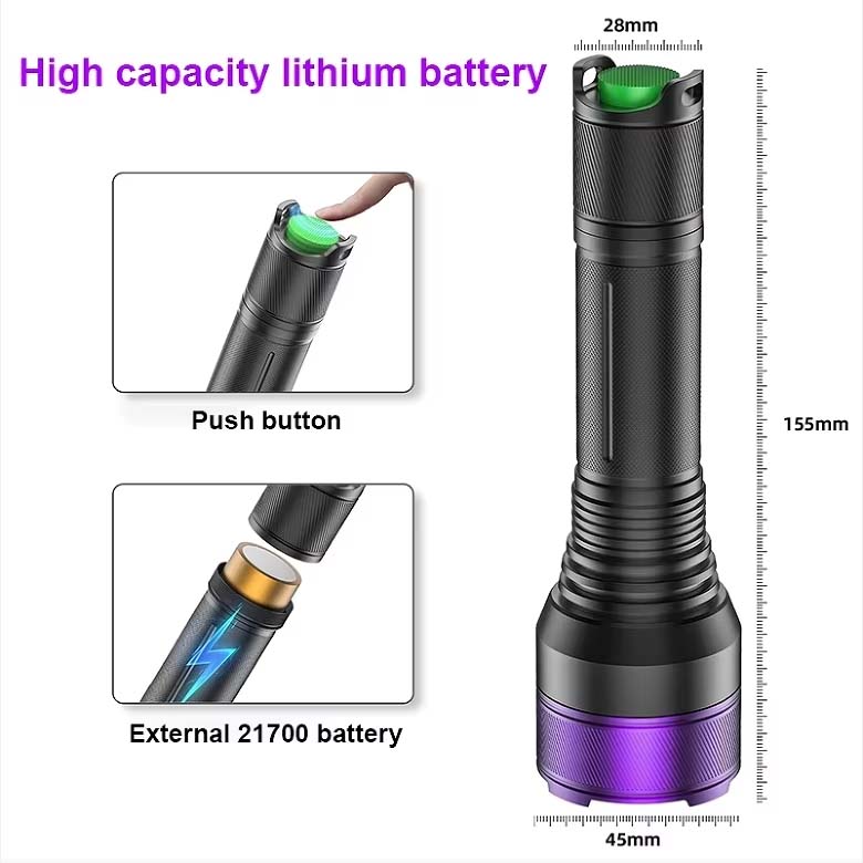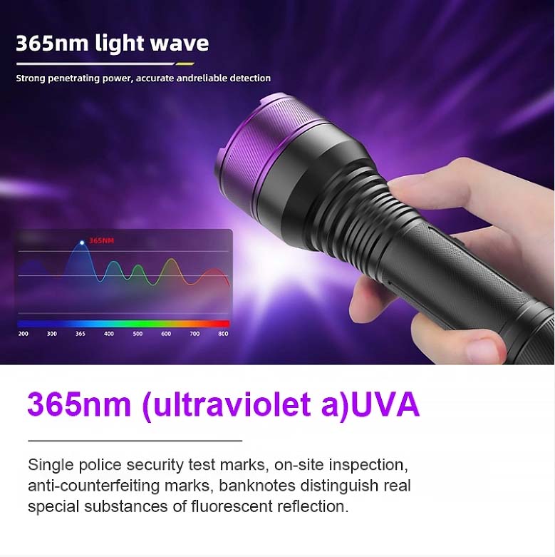 20W 365nm UV Flashlight Portable Professional Ultraviolet Black Light LED Flashlight for Resin Pet Urine Nails Money